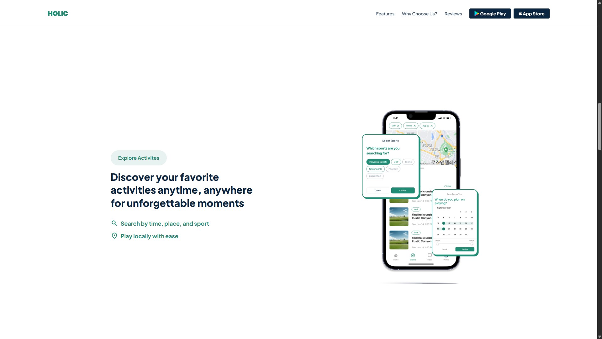 HOLIC 앱 소개 랜딩 페이지 신규 개발